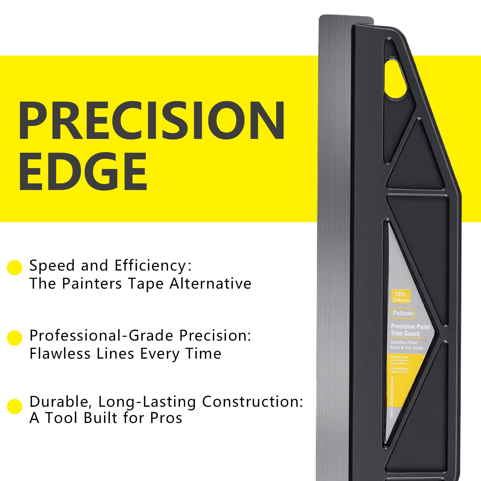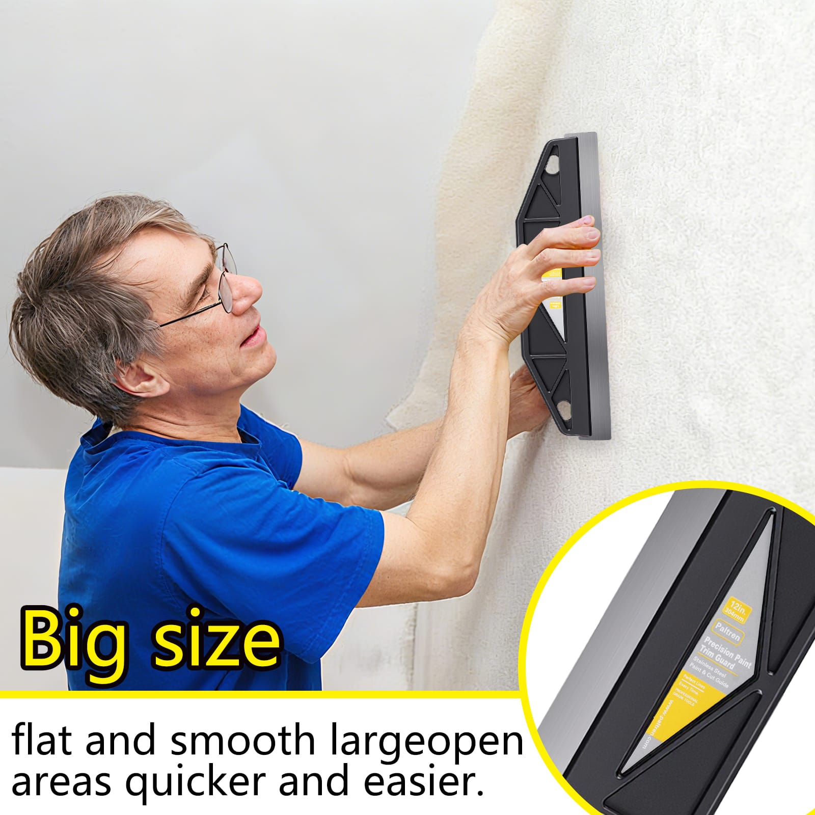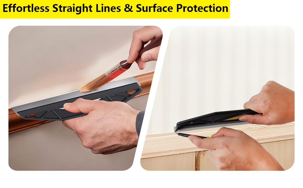 - SAY GOODBYE TO PAINTERS TAPE: Stop wasting hours on tedious prep work. This 12-inch paint guard lets you cut in directly along ceilings, trim, and baseboards, saving you time and frustration. Get professional results faster and skip the hassle of applying and removing tape.