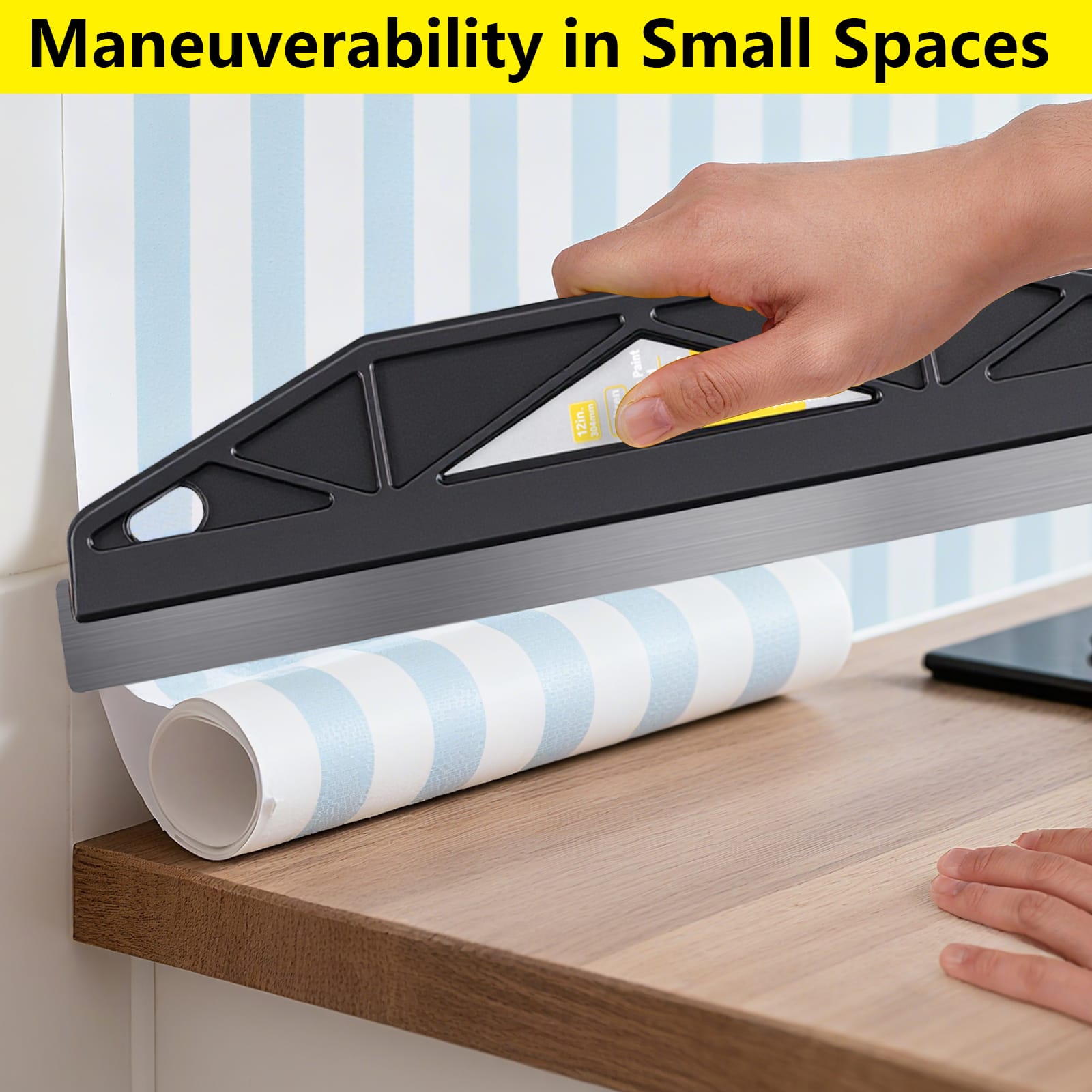 - VERSATILE FOR ANY PAINTING PROJECT: Whether you’re painting around window frames, door casings, ceilings, or accent walls, this tool is your go-to solution. Its slim profile easily slides into tight spaces, making it the only cutting-in tool you’ll need for your entire project.