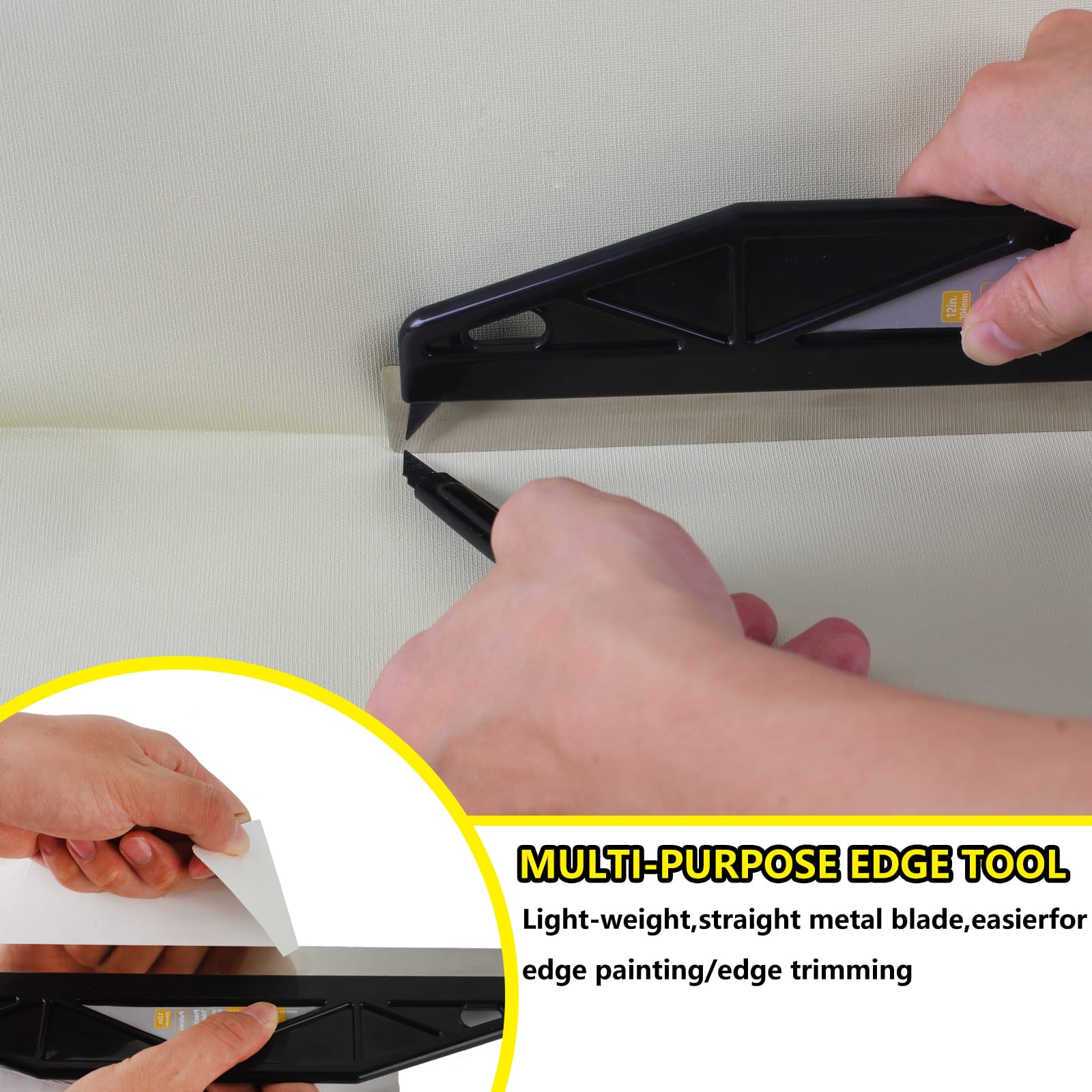 - STRAIGHTER LINES WITH SUPERIOR CONTROL: Engineered with a rigid, straight stainless steel blade, this edger helps you create sharp, consistent paint lines. The high-quality metal guide resists flexing to help you achieve a professional-looking finish with far less bleed-through than painting freehand. For best results and the sharpest lines, use on smooth, non-textured surfaces.
